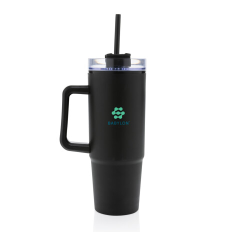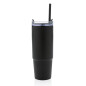 Откажитесь от одноразовых бутылок в пользу экологичной кружки Tana, изготовленной из переработанного пластика. Кружка с двойными стенками станет хорошим подарком для активных людей. Она станет незаменимым спутником во время прогулок, путешествий и поездок. Благодаря стильному внешнему виду ее можно взять с собой и в офис. В кружку можно налить любимый чай, воду или другой напиток: большой объем позволит долго наслаждаться напитком. Уникальной особенностью кружки стала вращающаяся крышка с тремя положениями. В первом кружка будет герметично закрыта и напиток не прольется в сумке или рюкзаке. Во втором положении крышка образует носик для питья, а третье позволяет вставить трубочку в специальное отверстие и пить с ее помощью. Размеры трубочки и отверстия под нее идеально подходят друг другу, и в этом положении напиток не прольется во время движения. Корпус оснащен ручкой — вам будет удобно не только держать кружку, но и носить ее. Основание оптимального размера подходит под большинство автомобильных подстаканников. Объем кружки — 900 миллилитров. Содержание вторичных материалов: 80% от общего веса изделия. Сертифицировано RCS. Эта сертификация полностью контролирует путь поставок переработанных материалов и гарантирует их наличие в изделии.