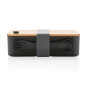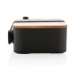С этим стильным ланч-боксом из переработанного полипропилена, сертифицированного RCS, вы не останетесь без обеда или перекуса на работе или на пикнике, на прогулке или в поездке. Ланч-бокс состоит из двух отделений, которые можно регулировать съемной перегородкой. На бамбуковой крышке есть отверстие для вывода пара. В комплект входят эластичный ремешок из rPET и ложка-вилка. Объем ланч-бокса — 1,4 литра. Упаковано в крафтовую коробку, сертифицированную FSC® mix. Количество переработанных материалов, которые использовались при создании ланч-бокса, составляет 44% от общего веса изделия. Сертификация RCS обеспечивает полный контроль цепочки поставок вторичных материалов. С посудомоечной машиной и микроволновой печью совместимы контейнер с вилкой. Для бамбуковой крышки и резинки подходит только ручное мытье, разогревать в микроволновой печи запрещено.