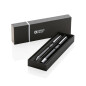 Набор, состоящий из двух ручек Cedar, станет отличным подарком для деловых людей. Стильные и функциональные, они изготовлены из переработанного алюминия. Если уронить такую ручку, она не сломается, не треснет, на ней не останется никаких следов. К тому же, алюминий — уникальный материал, который можно перерабатывать бесконечно и не терять при этом его свойств. Набор экологичен и подходит для тех, кто заботится о природе. А что насчет внешнего вида? Строгие, минималистичные, но при этом эффектные ручки станут вашими спутниками при подписании самых важных договоров. Стержня с синими чернилами хватит на 1 200 метров письма, а длина письма роллера — 400 метров. Все переработанные материалы имеют сертификат RCS, который гарантирует полный контроль цепочки поставок переработанных материалов.