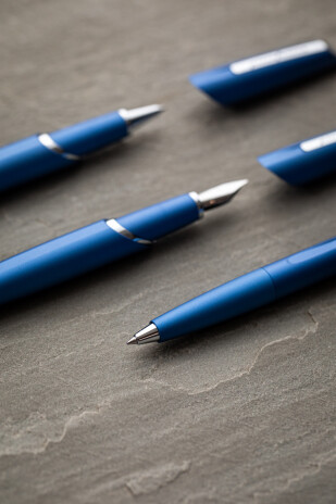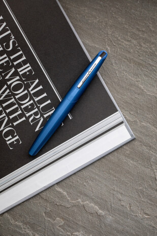 Перьевая ручка PF Two от дизайнеров Pininfarina, обладатель премии Red Dot Design Award 2021. Точные геометрические формы и уникальное техническое исполнение ручки превращают ее из пишущего инструмента в совершенный аксессуар. Скошенные линии колпачка. Элегантное сочетание синего матового корпуса и серебристого полированного клипа на колпачке ручки. Фидер (устройство подачи чернил) ручки выполнен с помощью микромеханической техники, специально откалиброван, обеспечивает длительный срок службы чернил и защищает при перепадах атмосферного давления и температуры. Перо стальное, тонкое F. Длина ручки 15 см, вес 45 гр. Упакована в серебристую округлую подарочную коробку. Примечание: • Возможна индивидуальная поставка товаров бренда из Европы с минимальной суммой заказа 500 тыс. руб. в РРЦ. • Срок доставки из Европы — от 5 недель.