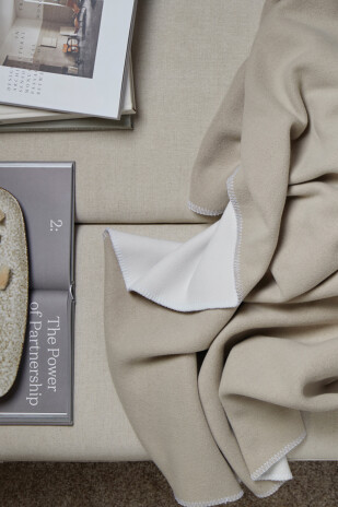 Плед Moulton от VINGA изготовлен из переработанных пластиковых бутылок и отличается мягкостью и необычным дизайном. Это двусторонний плед, и его стороны окрашены в разные цвета. Он украсит и разнообразит интерьер, а также согреет в прохладное время года. Размер пледа универсален — 130х170 сантиметров. Содержание переработанных материалов составляет 100% от общего веса изделия. Сертифицировано GRS. Эта сертификация полностью контролирует путь поставок переработанных материалов и гарантирует их наличие в изделии.