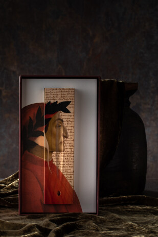 Лимитированная коллекция бренда Pininfarina CAMBIANO BOX EXCLUSIVE DANTE 700TH ANNIVERSARY в память о Данте Алигьере, приуроченная к 700-летию его смерти. На коробке из массива кедра, которая является одновременно настольной подставкой для шариковой ручки Cambiano, изображен культовый портрет великого итальянского поэта, написанный мастером эпохи Возрождения Сандро Боттичелли между 1480 и 1485 годами. Именно этот портрет сделал профиль Данте узнаваемым во всем мире. Корпус ручки выполнен из алюминия с вставками из кедрового дерева. Вес ручки 39 гр, длина 16 см. В ручке используется шариковый стержень CROSS® 8513 с синей пастой. Набор упакован в подарочную коробку.