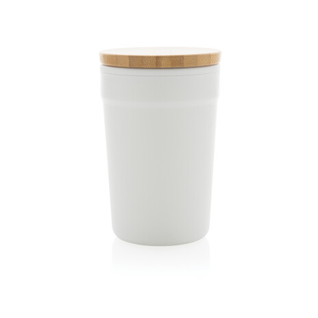 Стакан из переработанного полипропилена GRS с бамбуковой крышкой, 300 мл