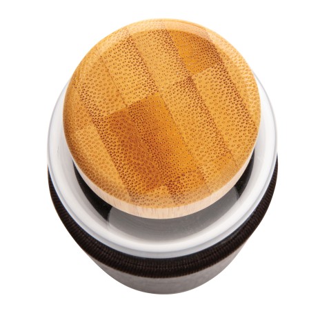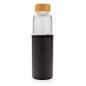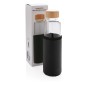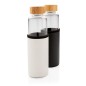 Стеклянная бутылка с текстурированным чехлом из PU идеально подойдет тем, кто не хочет пить из пластика. Стеклянная бутылка закрывается герметичной крышкой из бамбука. Широкое горлышко позволяет комфортно пользоваться бутылкой, а нескользящий чехол из PU защищает стекло от внешнего воздействия и добавляет стильный штрих. Объем 550 мл.