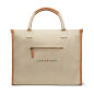 Деловая сумка-тоут отлично подойдет для рабочих будней или поездок. Стильная и вместительная, она отличается контрастной отделкой — стильным акцентом, привлекающим внимание. В сумке есть отделение с мягкой подкладкой — для ноутбука или планшета диаметром до 13’’. Основное отделение просторное, в него поместятся документы, зарядные устройства, кошелек и другие необходимые вещи. Снаружи задней стенки есть небольшой кармашек на молнии для ценных мелочей. У сумки короткие ручки с имитирующей кожу отделкой. Сумка изготовлена из переработанного канваса: на 70% он состоит из переработанного хлопка, а на 30% — из переработанного полиэстера. Все переработанные материалы имеют сертификат RCS, который гарантирует полный контроль цепочки поставок переработанных материалов.