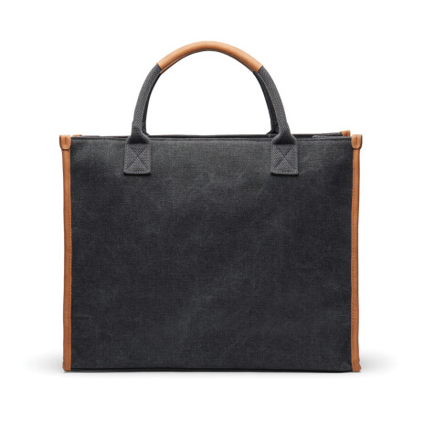 Деловая сумка-тоут отлично подойдет для рабочих будней или поездок. Стильная и вместительная, она отличается контрастной отделкой — стильным акцентом, привлекающим внимание. В сумке есть отделение с мягкой подкладкой — для ноутбука или планшета диаметром до 13’’. Основное отделение просторное, в него поместятся документы, зарядные устройства, кошелек и другие необходимые вещи. Снаружи задней стенки есть небольшой кармашек на молнии для ценных мелочей. У сумки короткие ручки с имитирующей кожу отделкой. Сумка изготовлена из переработанного канваса: на 70% он состоит из переработанного хлопка, а на 30% — из переработанного полиэстера. Все переработанные материалы имеют сертификат RCS, который гарантирует полный контроль цепочки поставок переработанных материалов.
