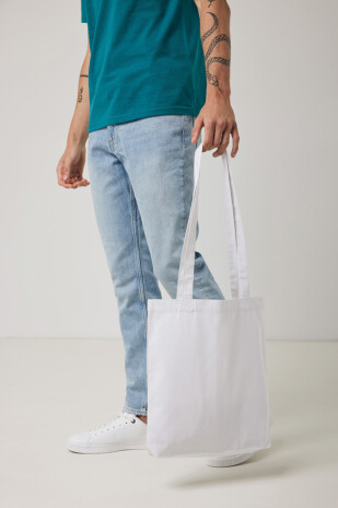 Возьмите с собой все самое необходимое с этой вместительной сумкой для покупок, сделанной из переработанного хлопка Aware™ (70% переработанного хлопка и 30% rPET). Сумка выполнена в минималистичном стиле, длины ручек достаточно, чтобы комфортно носить ее на плече. Модель плотностью 330 г/м2, при производстве были сэкономлены тысячи литров воды. На 1 кг обычного хлопка уходит около 9800 литров воды, в то время как переработанный хлопок требует 0 литров! Ткань этой сумки содержит индикаторные частицы Aware™, благодаря которым можно отследить весь ее путь и получить сертификаты подлинности при помощи блокчейна. По-настоящему экологичная сумка для ежедневного использования.