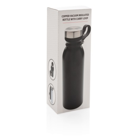 Герметичная вакуумная бутылка Copper с удобной силиконовой петлей. Теперь вы можете пить любые напитки одной рукой, не думая о том, куда положить крышку от бутылки. Двойные стенки с вакуумной медной изоляцией позволят напитку оставаться теплым в течение 8 часов и прохладным в течение 24 часов. Конструкция бутылки предотвращает конденсацию снаружи бутылки. Объем: 600 мл.