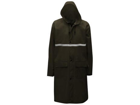 Длинный дождевик выполнен из полиэстера с водоотталкивающей пропиткой. Застегивается на молнию, поверх которой — планка на кнопках, что дополнительно защищает от ветра и промокания. Посадку капюшона можно регулировать при помощи шнурка, ширина рукава регулируется кнопкой. Светоотражающая тесьма на груди и спине делает человека в плаще заметным даже в темное время суток. Вместительные накладные карманы защищены сверху клапаном. Дополнительная проклейка швов дождевика обеспечивает большую степень водонепроницаемости. - водонепроницаемость обеспечивается водоотталкивающей пропиткой материала и дополнительной проклейкой швов - светоотражающие элементы делают человека заметным в темное время суток - вместительные накладные карманы