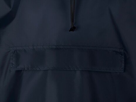 Дождевик - пончо прямого силуэта. Нагрудный карман плаща закрывается на молнию, которая дополнительно защищена клапаном, а еще в него можно полностью убрать дождевик. На дне кармана — ручка-петелька, которая в сложенном виде может использоваться для подвешивания. Швы капюшона и рукавов отделаны светоотражающим кантом, который делает человека заметным даже в темное время суток. Для комфортной посадки — затягивающийся на шнурок капюшон с фиксатором и манжеты на резинке.
