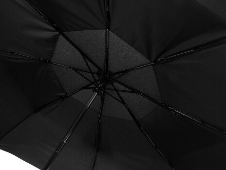 Купол этого складного зонта-автомата состоит из двух полотен и имеет большой диаметр 127 см. Прочный каркас и спицы из стекловолокна устоят при порывах ветра. Благодаря этому зонт служит надежным укрытием в самый сильный дождь. Закрывается в 3 сложения. Ручка обработана мягким покрытием soft-touch. Широкий хлястик для удобства персонализации.
