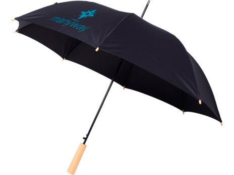 Полуавтоматический зонт с куполом из эпонж полиэстера и переработанного ПЭТ-пластика. Прочный металлический стержень, высококачественная рама со спицами из стекловолокна, обеспечивающая гибкость в ветреную погоду. Сочетание деревянной ручки, кончиков спиц и купола из эпонж полиэстера и переработанного ПЭТ-пластика обеспечивает надежность зонта.