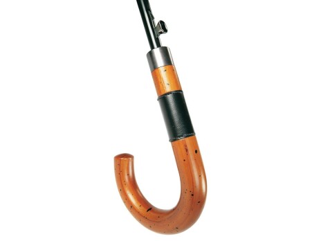 Купол этого полуавтоматического зонта покрыт тефлоном, который делает ткань более стойкой к промоканию и пятнам. Стильная ручка из натурального дерева со вставкой из искусственной кожи.