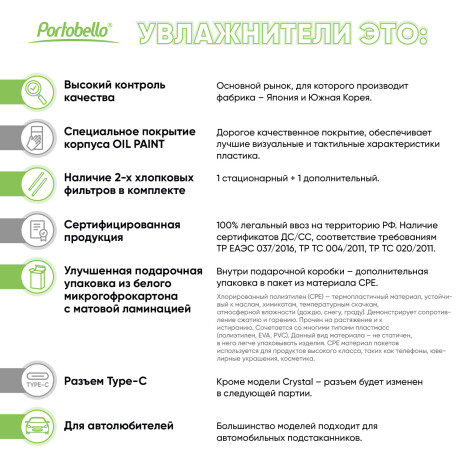 Портативный увлажнитель воздуха со встроенным аккумулятором 1000 mAh и функцией радужной LED-подсветки. Технология нано-распыления эффективно снижает сухость воздуха и электронное излучение, что устраняет статическое электричество. Конструкция с наклоном позволяет сделать поток воздуха направленным. Специальное покрытие корпуса OIL PAINT улучшает визуальные и тактильные характеристики изделий. Подходит для использования в автомобиле. Объем резервуара для воды - 260 мл.