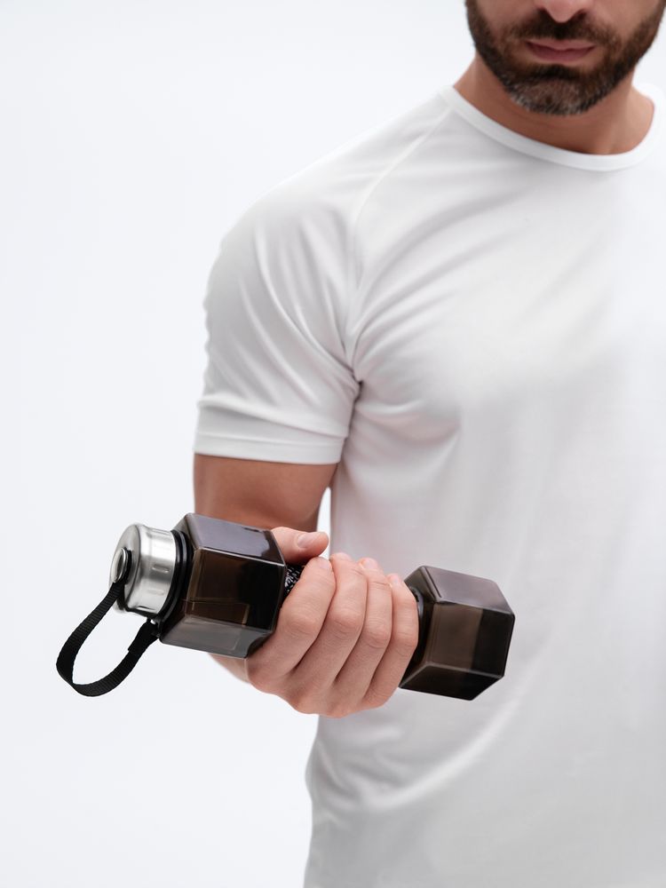 Стильная и функциональная бутылка Hantelis — превосходный выбор для спортсменов и всех, кто придерживается активного образа жизни. Благодаря прочному корпусу и эстетичному дизайну она отлично подходит как для интенсивных тренировок в зале, так и для легких занятий на свежем воздухе. С ней легко поддерживать водный баланс в течение всего дня. Главная особенность модели — уникальный дизайн в виде гантели. Наполненная водой бутылка превращается в полноценный спортивный снаряд, позволяя проводить легкую разминку или полноценную тренировку в любом месте и в любое время!Узкая средняя часть обеспечивает удобный и надежный хват. Крышка с уплотнительным кольцом надежно защищает от протекания. Прочный ремешок фиксирует крышку, не давая ей потеряться. Полупрозрачный корпус выполнен из качественного пищевого пластика, который полностью безопасен для здоровья.
