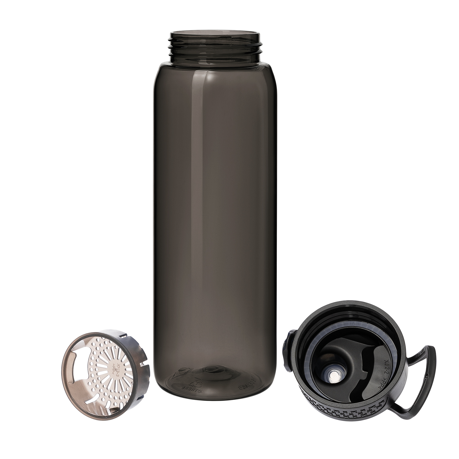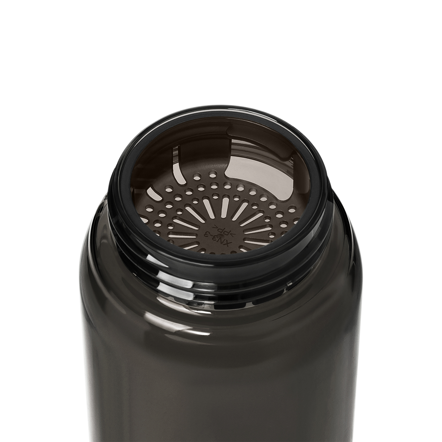 Благодаря широкому горлышку и встроенному ситечку-фильтру в бутылку можно добавлять различные ягоды или фрукты – кусочки не будут попадать в питьевое горлышко.—