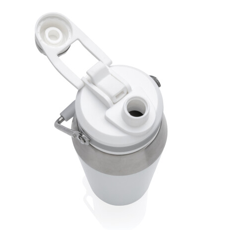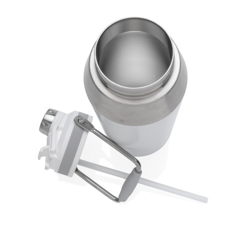 Идеальная бутылка из нержавеющей стали для тех, кто всегда в движении. Оснащена двумя вариантами питья: откидной трубочкой и завинчивающейся крышкой. Есть ручка для удобной переноски. Двойные стенки из нержавеющей стали позволяют сохранить напитки горячими до 5 и холодными до 15 часов. Матовое покрытие устойчиво к царапинам. Объем 1 л. Не содержит BPA.