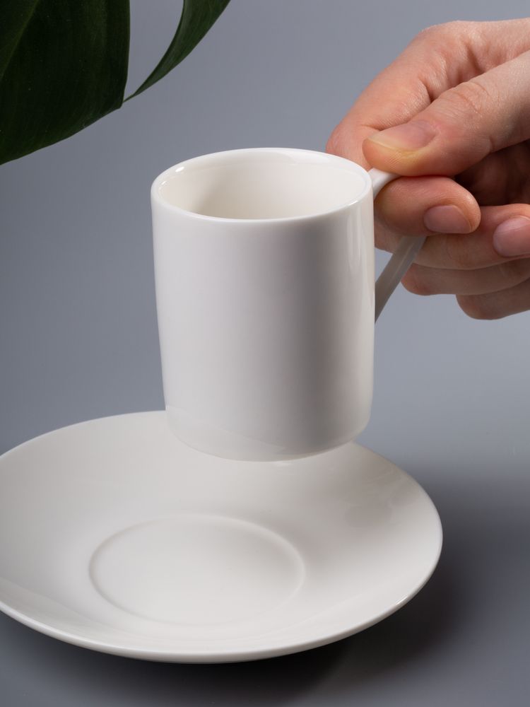 - Размеры: чашка: диаметр 5,6 см, высота 6,4 см, ширина с ручкой 8,1 см; блюдце: 12,6х12,6х1,6 см см; упаковка 17,6х18,6х10,3 см