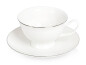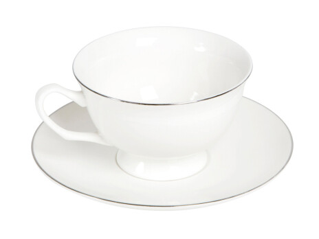 Изящная чайная пара с серебристым кантом от Eat&Bite создаст особенную атмосферу чаепития по-английски. Костяной фарфор очень лёгкий и тонкий и слегка просвечивается. Но несмотря на это, посуда из него достаточно прочная и прослужит вам долгие годы. Эта чайная пара прекрасно подойдёт не только для чая, но и для кофе. • Утончённый дизайн • Костяной фарфор • Подходит как для чая, так и для кофе Чайную пару рекомендуется мыть вручную с использованием мягких моющих средств и не использовать в микроволновке.