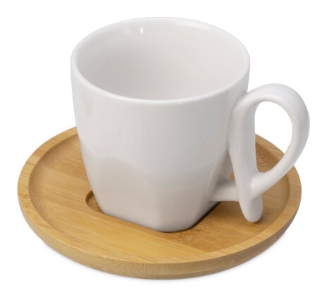 - Кофейная пара с бамбуковым блюдцем "Mandy", белый (Р)
