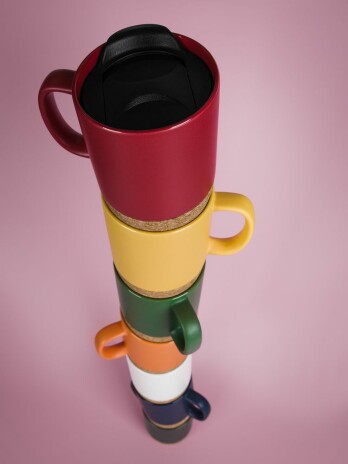 Кружка Corky Walk продумана до мелочей — яркий контраст текстурной пробки и матового фаянса привлекает внимание, а съемная крышка не даст остыть любимому напитку.