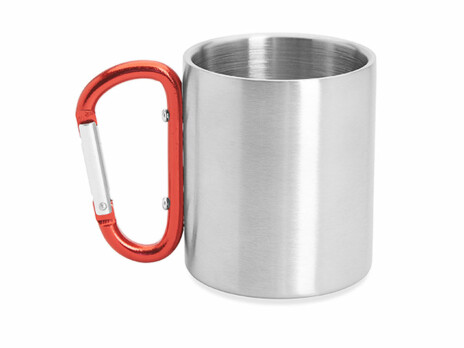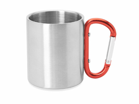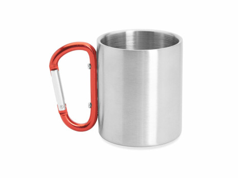 - Кружка GUAYA с ручкой карабином, 230 мл, серебристый/красный