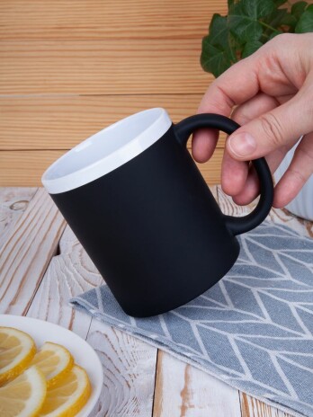 Кружка классической формы StopSpot привлекает внимание своим дизайном и покрытием. Яркая матовая поверхность выигрышно контрастирует с глянцевым белым ободком — так кружка выглядит необычно, а еще меньше пачкается во время эксплуатации.