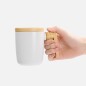 Стильная кружка с крышкой и ручкой из бамбука станет самой любимой на полке.