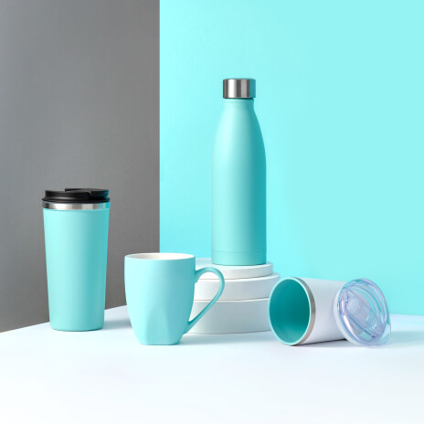 - Термокружка вакуумная с керамическим покрытием Arctic, белый/аква