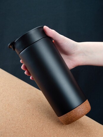 Контраст текстурной пробки на дне и матового покрытия делают термостакан Steady не только практичным, но и стильным подарком.
