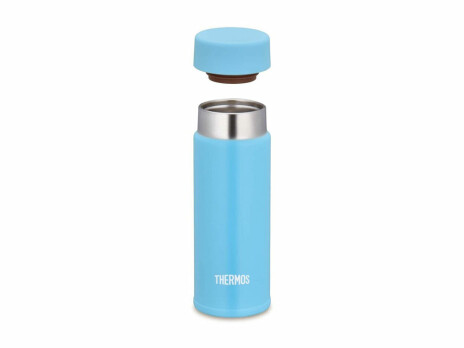 Самый маленький термос в мире – модель THERMOS® JOJ-120. Несмотря на свои малые размеры, термос объёмом 120 мл вмещает в себя 2-3 чашечки эталонного кофе эспрессо, сохраняя насыщенность и вкус классического напитка. Вакуумная изоляция и двойные стенки из пищевой коррозионностойкой стали позволяют длительно поддерживать температуру не только горячих, но и холодных жидкостей, поэтому мини-термос пригодится и в жаркое время года, чтобы освежиться прохладным напитком. Благодаря компактным размерам термос JOJ-120 по праву можно назвать карманным – его высота всего лишь 12,5 см, а диаметр основания – 4,5 см. За счет особых технологий производства THERMOS, внешний объём термоса практически равен внутреннему, а его вес составляет 90 г. Даже заполненный термос не утяжелит самую компактную дамскую сумочку. Одна из главных конструктивных особенностей - горлышко со скруглённым краем для удобства питья. Миниатюрный термос обладает всеми достоинствами своих классических собратьев. Надёжность и герметичность обеспечивает винтовая крышка-пробка с термостойкой силиконовой прокладкой, которая плотно закрывается и защищает от случайных протеканий напитка. За прочность термоса отвечают стальные корпус и колба. Все материалы, используемые в производстве термоса, экологичные, термостойкие, долговечные. Они не выделяют и не поглощают посторонние запахи, не содержат бисфенол-А (BPA free) и безопасны для здоровья. Утончённый внешний вид мини-термоса подчёркивает глянцевое покрытие голубого цвета.