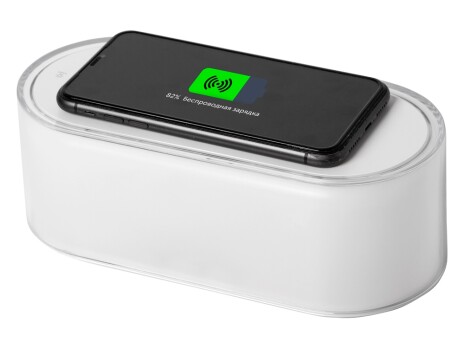 Ночник с RGB-подсветкой из 7 переливающихся цветов. Также есть режимы стандартного и яркого освещения теплым светом. Ночник выполняет функцию зарядной станции для устройств, поддерживающих беспроводную зарядку стандарта Qi мощностью 15 Вт*. Функция ночника работает без подключения к сети благодаря встроенному аккумулятору на 400 мАч. Функция беспроводной зарядки работает только при питании от сети. Устройство можно брендировать методом УФ-печати, тампопечати, а также цифровой печати. *при наличии сетевого адаптера 18 Вт, в комплект не входит. - быстрая беспроводная зарядка до 15 Вт - 3 режима работы подсветки - встроенный аккумулятор 400 мАч для работы ночника - удобная форма для нанесений