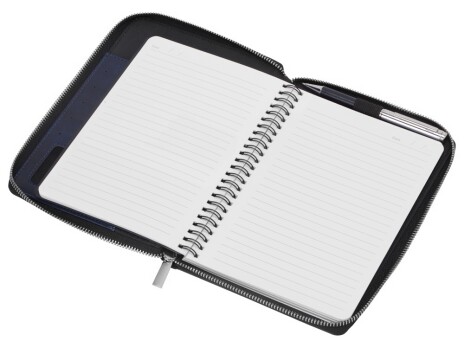 Бизнес блокнот Fabrizio состоит из пенала на молнии выполненного из искусственной кожи, и сменной тетради на 80 листов на кольцах с перфорированными линованными листами белого цвета. Блокнот снабжен 5 отделениями для карт и RFID защитой, которая охраняет вашу личную и финансовую информацию от мошенников. Внутри блокнота есть петля для ручки в тон (ручка в комплект не входит).