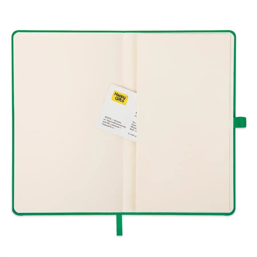 Цвет обложки, близкий к пантону 341 СРазмер 130*210 мм, переплет твердыйБлок недатированный, в линейкуСкругленные углы, двухцветная печатьБумага кремовая, плотность 70г м2Форзац нахзац кремовые256 страницШелковистая резинка, 12 ммЛяссе в цвет резинкиПетелька для ручкиКарман для визитокУпаковка: полипропиленовый пакетВ данный момент происходит смена справочной части блока. Внешний вид изделия остается без изменений.