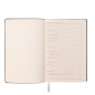 Недатированный ежедневник в гибкой обложке из качественной искусственной кожи со скругленными уголками. Покрытие матовое гладкое, слегка припудренное. Очень приятное на ощупь. Форзац, нахзац и срез кремового цвета. Страницы со скругленными уголками из гладкого шелковистого офсета, кремовые. Одинарное атласное ляссе в цвет обложки. Без пластиковой коробки, без стикеров, без логотипа Portobello на задней обложке.