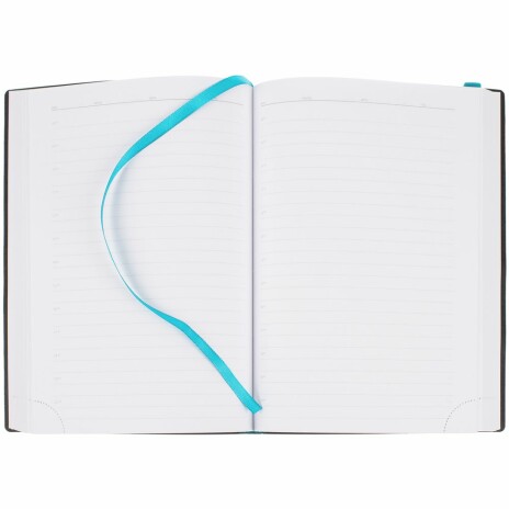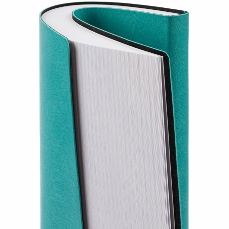 Ежедневник с гибкой обложкой выполнен из материала Latte, морская волна II, и дополнен резинкой шириной 1 см, капталом и ляссе в цвет обложки.