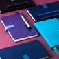 Цвет обложки, близкий к пантону 2396С Размер 130*210 мм, переплет твердый Магнитный клапан-застежка Обложка термоактивный PU Bondy Блок недатированный, в клетку Скругленные углы, двухкрасочная печать Бумага кремовая, плотность 70г м2 Форзац нахзац кремовые 272 страницы 8 инфостраниц для путешествий Двойное ляссе в цвет обложки и клапана Упаковка крафтовый сливбокс