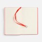 Ежедневник с гибкой обложкой, выполнен из материалов Soft Touch Ultra, красный РР, и Latte, красный (внутренняя часть обложки), дополнен ляссе в цвет обложки с металлическим шильдиком.