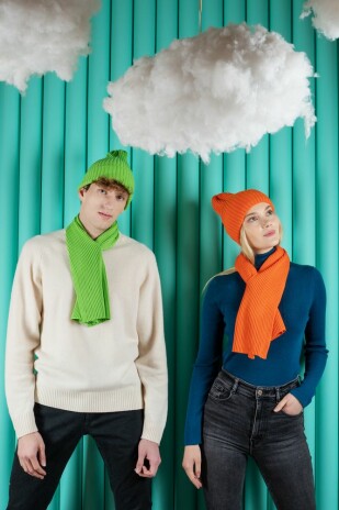 Немного конструкторской смекалки — и вопрос, как красиво завязать шарф Yong, решится сам собой. Пропустите один конец шарфа в отверстие и получите красивую драпировку легким движением руки. А если вы предпочитаете классические узлы, то отверстие, спрятанное в фактурном узоре, не помешает повязать шарф привычным образом.