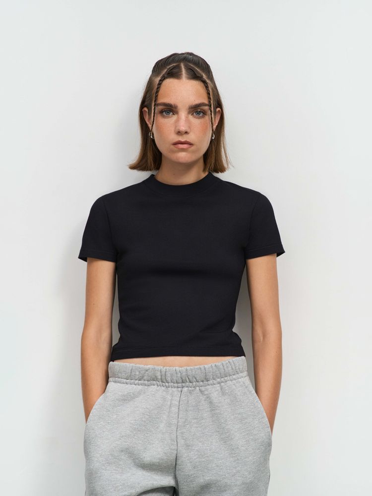 Укороченная женская футболка из органического гребенного хлопка.