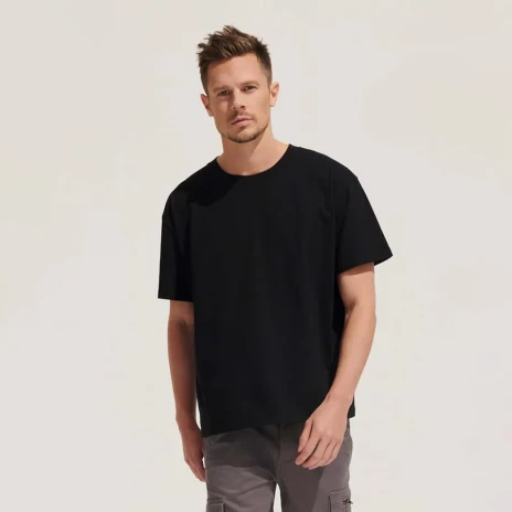 Футболка оверсайз унисекс с круглым вырезом, без боковых швов, высокой плотности. Выполнена из смеси переработанного хлопка (50%) и обычного хлопка (50%).