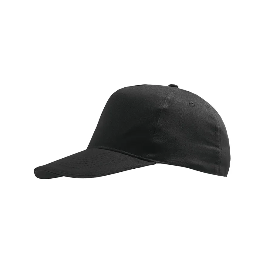 Бейсболка без шва на лбу, 5 клиньев, 4 обшивных люверса, жесткий козырек, застежка-липучка.