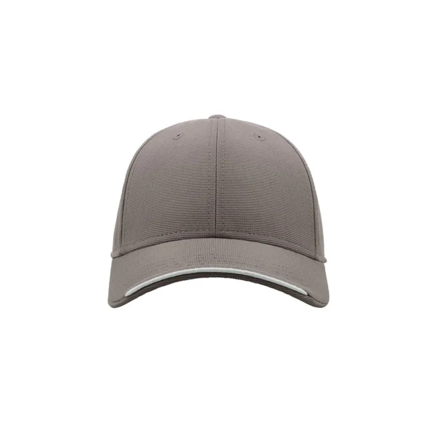 Плотная жаккардовая бейсболка ESTORIL с декоративным кантом по центру козырька. - 6 клиньев,- лобовой шов,- 6 вышитых люверсов для лучшей вентиляции,- изогнутый козырек с полной прострочкой,- контрастный кант в центральной части козырька. - застежка на липучке. Цвет близкий к Pantone 423 C58,5 см - средний размер, с помощью застёжки его можно увеличить или уменьшить до необходимого.