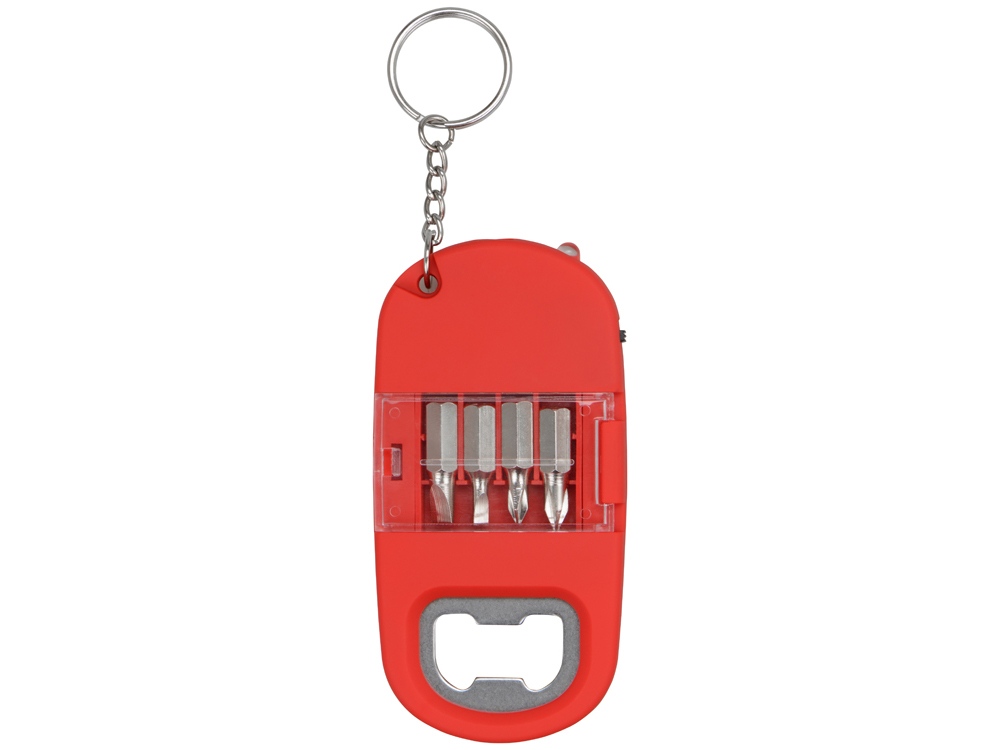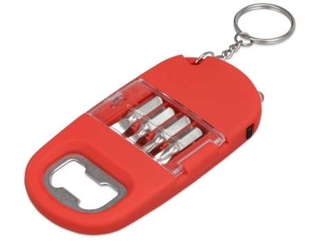 - Брелок-открывалка с отвертками и фонариком "Uni", софт-тач, красный