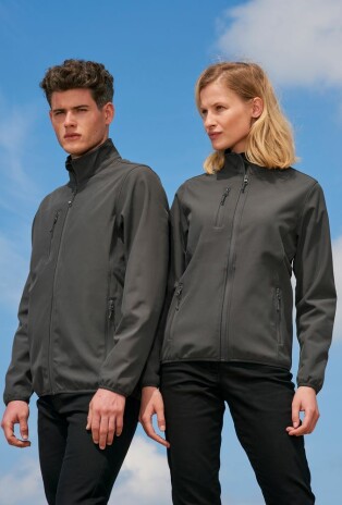 Мужская водонепроницаемая и ветрозащитная куртка на молнии из трехслойного софтшелла с флисовой изнанкой. Выполнена из переработанного полиэстера.