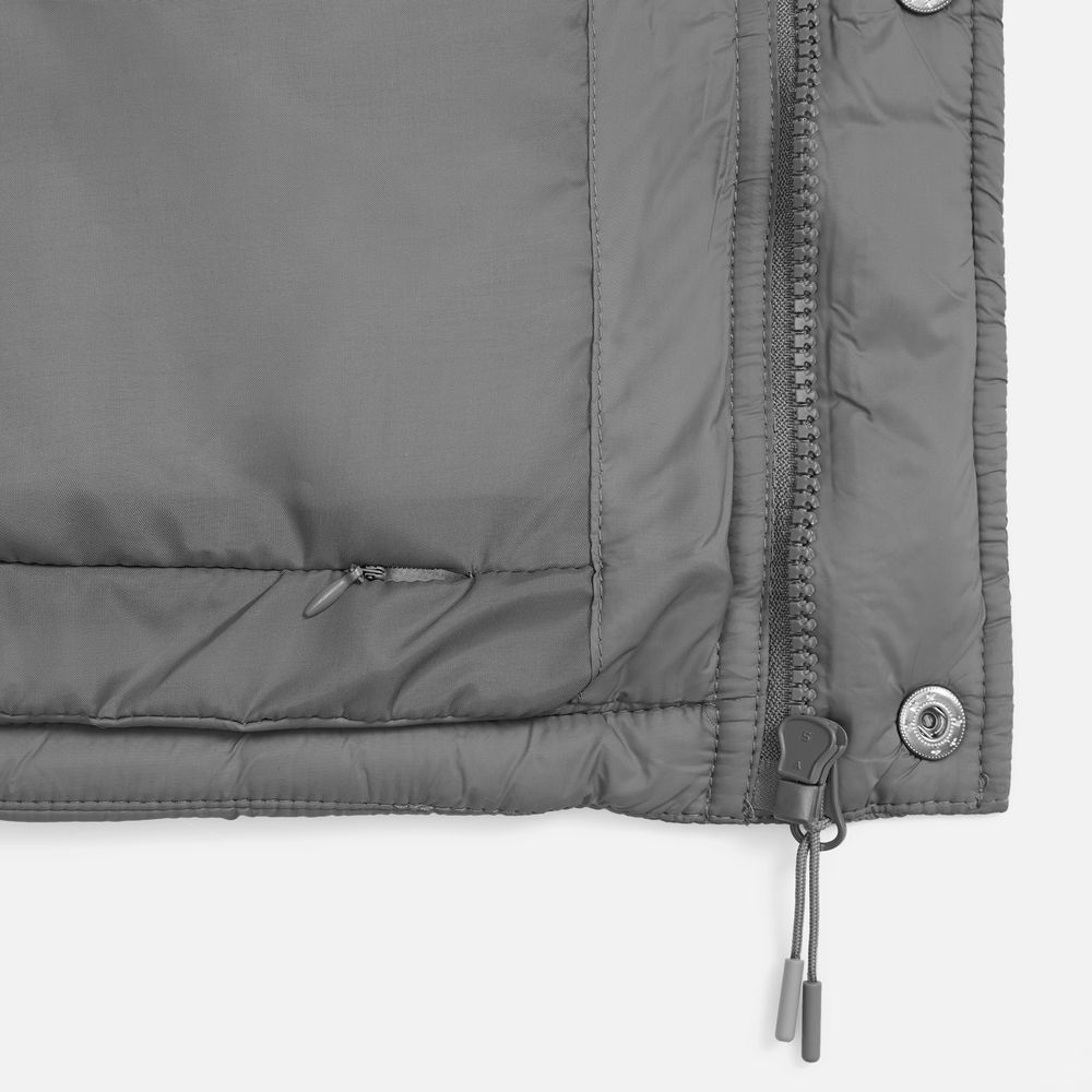 - Материал: верх - нейлон 100%, плотность 280T, таффета; утеплитель - полиэстер 100%, искусственный пух, плотность 300 г/м²; подкладка - полиэстер 100%, плотность 230T, таффета