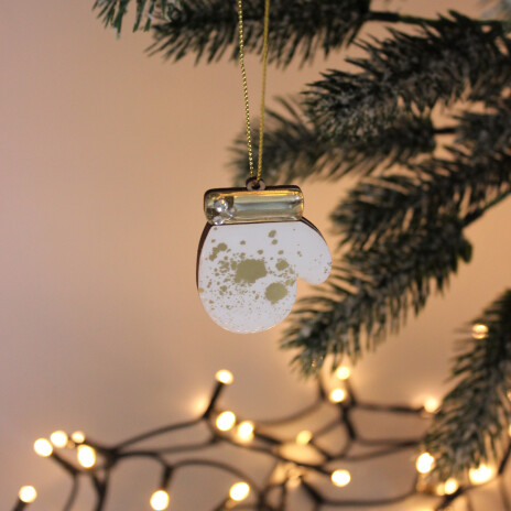 Ёлочная игрушка Варежка (белый с золотым )