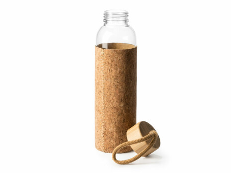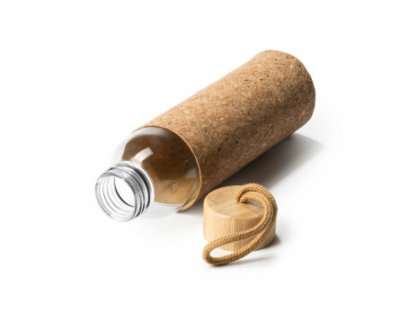 Бутылка стеклянная LAWAS в чехле из натуральной пробки, 500 мл, прозрачный/бежевый