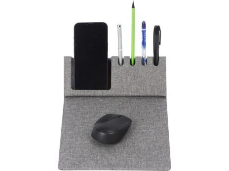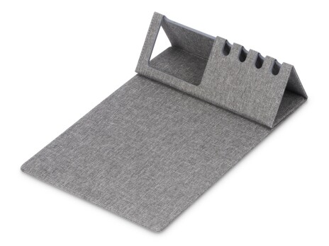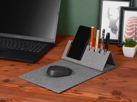 Коврик для мыши «Formo» выполнен из переработанных материалов. В случае загрязнения его легко очистить влажной салфеткой. Противоскользящий слой препятствует перемещению аксессуара по столу в процессе работы, а складная подставка под ручки и смартфоны поможет держать все необходимое под рукой.