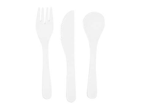 Ланч-бокс из PLA с силиконовым ремешком для регулировки. В комплекте вилка, ложка и нож. Емкость 1 л Наслаждайтесь едой в любом месте.